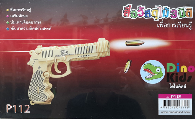 Dinokids3D ตัวต่อไม้ 3 มิติ ปืนพก Luger P08 pistol จิ๊กซอว์ไม้ โมเดลไม้ 3 มิติ
